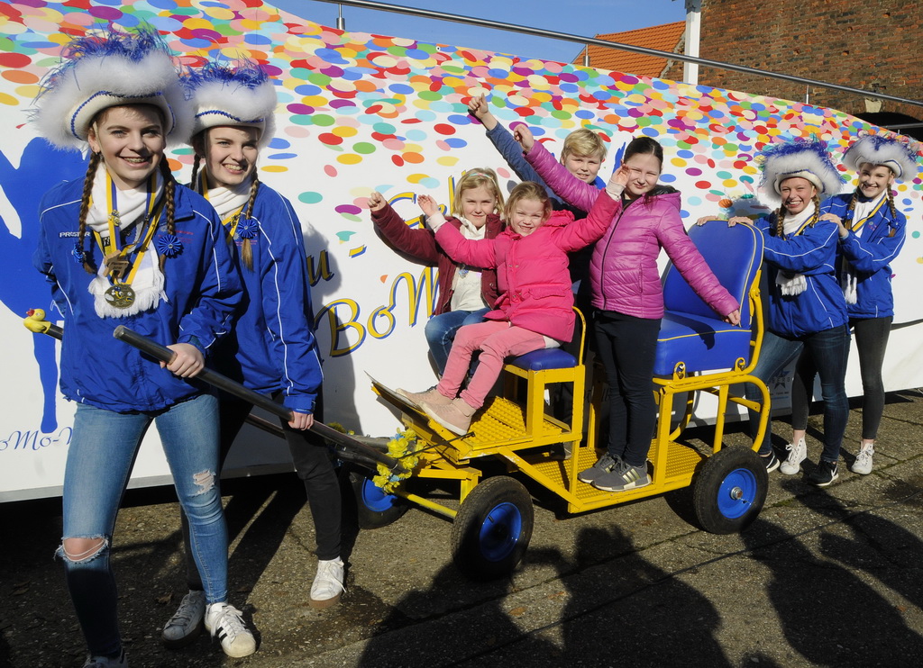 Marlene Gers, Gewinnerin der zweiten Klassen, feiert auf dem Gardewagen, Laura Lukasik fährt mit Hippenmajor Dirk I. und Lucas Berkholz, Gewinner der vierten Klassen, traut sich auf den Räuberwagen.