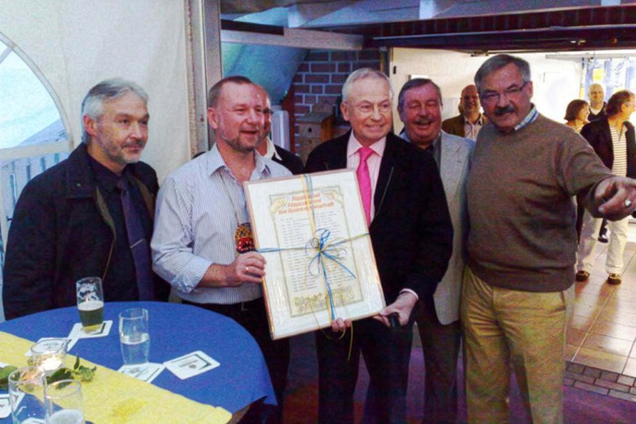 Als „kleines Dankeschön" hat Andreas I. eine goldfarbene Rückwärtsreiter Anstecknadel anfertigen lassen, die er persönlich im Laufe des Abends an seine Gäste überreichte.