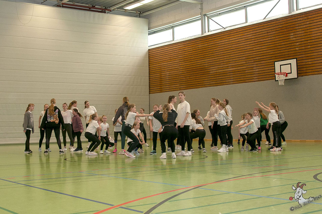 Unsere Jugend, Junioren und Ü15 wurden dann in zwei Teams aufgeteilt: Die eine Gruppe widmete sich einem anspruchsvollen Sprungkrafttraining, während die andere einen kurzen Einblick in die Welt des Balletts erhielt. Diese unterschiedlichen Trainingseinheiten ermöglichten den Tänzerinnen, ihre Fähigkeiten zu erweitern.