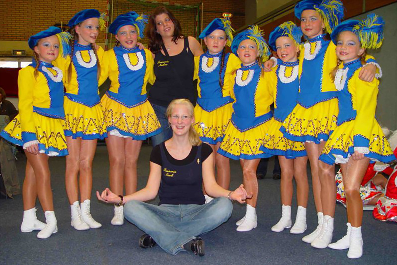 Als diese dann endlich da waren, und auch die Turnierunterlagen mit der Startnummer fünf vorlagen, stand unserer Anreise nach Rheine nichts mehr im Wege.  Nachdem wir uns nach der Ankunft orientiert hatten, konnte es losgehen, Kostüme anziehen, Schminken, Frisieren, Dehnen, Mut zusprechen, also das ganze Programm.  Nun rückte unsere Startnummer näher, und wir mussten zur Passkontrolle. Uns war die Anspannung deutlich anzumerken, obwohl der nette Herr, der die Passkontrolle vornahm, mit kleinen Witzchen die Stimmung etwas aufzulockern versuchte.
